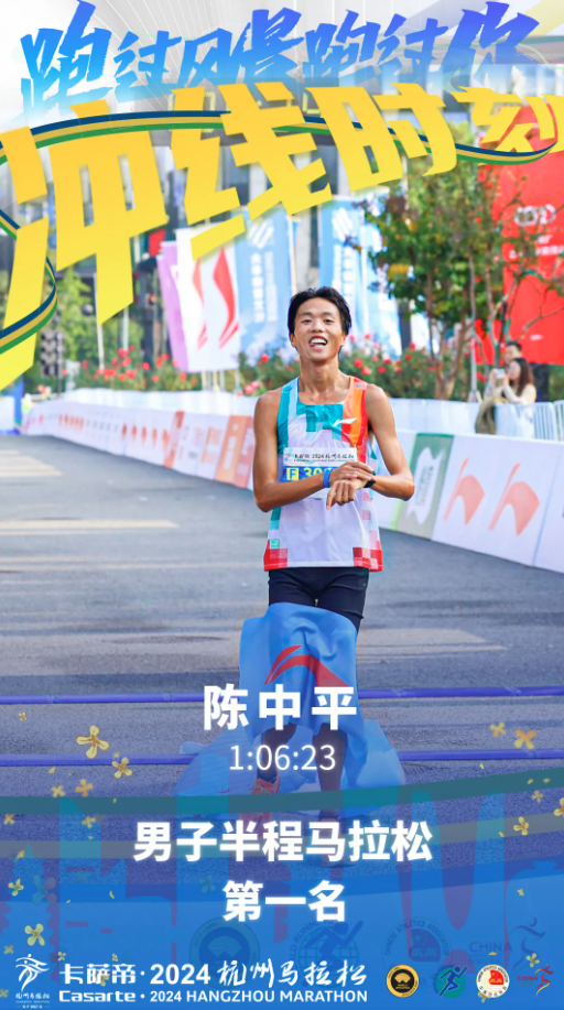 半马男子组,中国选手陈中平以1小时06分23秒的成绩获得第一名,选手李大林以1小时06分26秒的成绩获得第二名,选手吴浩然以1小时06分37秒的成绩获得第三名。