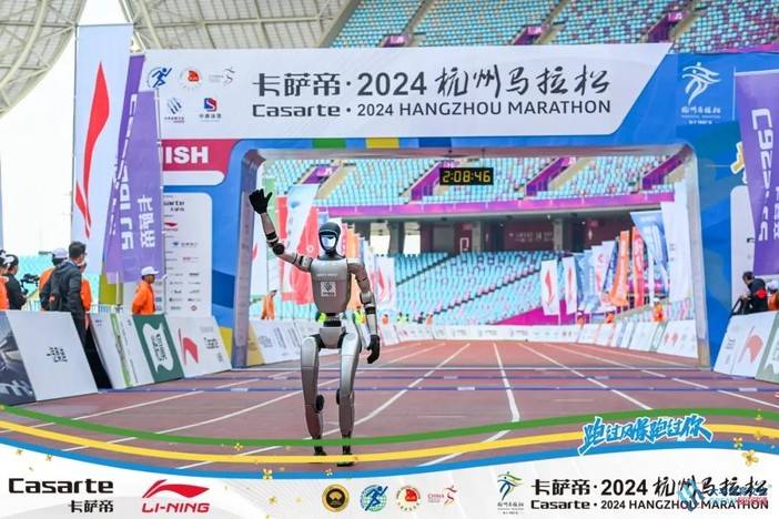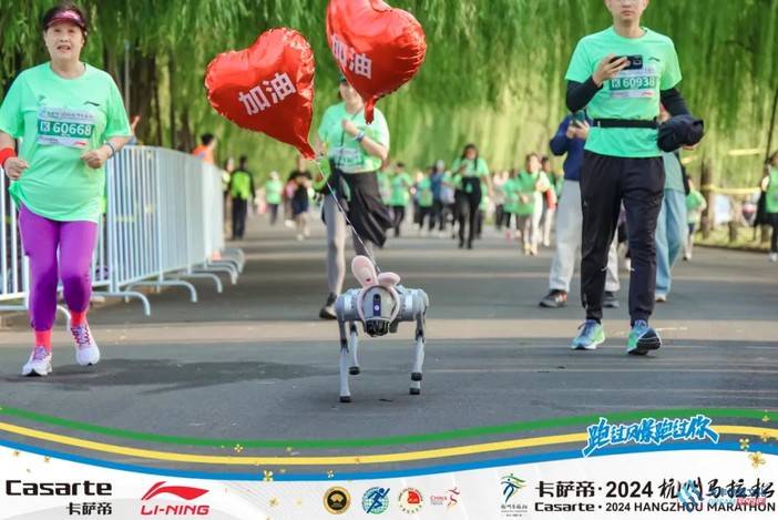 在大丰体育文化的策划下,今年杭马还首次引入了机器人配速员,这在国际马拉松历史上尚属首次。首次引入的四足机器人配速员,体型较大的担任半马赛事的关门兔,较小的则将担任欢乐跑的“陪跑兔”。